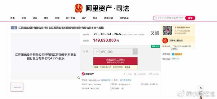 江苏阳光债务危机后续,所持海安农商行股权被拍卖,资产,大股东,商业银行,银行股,阳光股份,银行相关基金,支行,财经,资产规模...